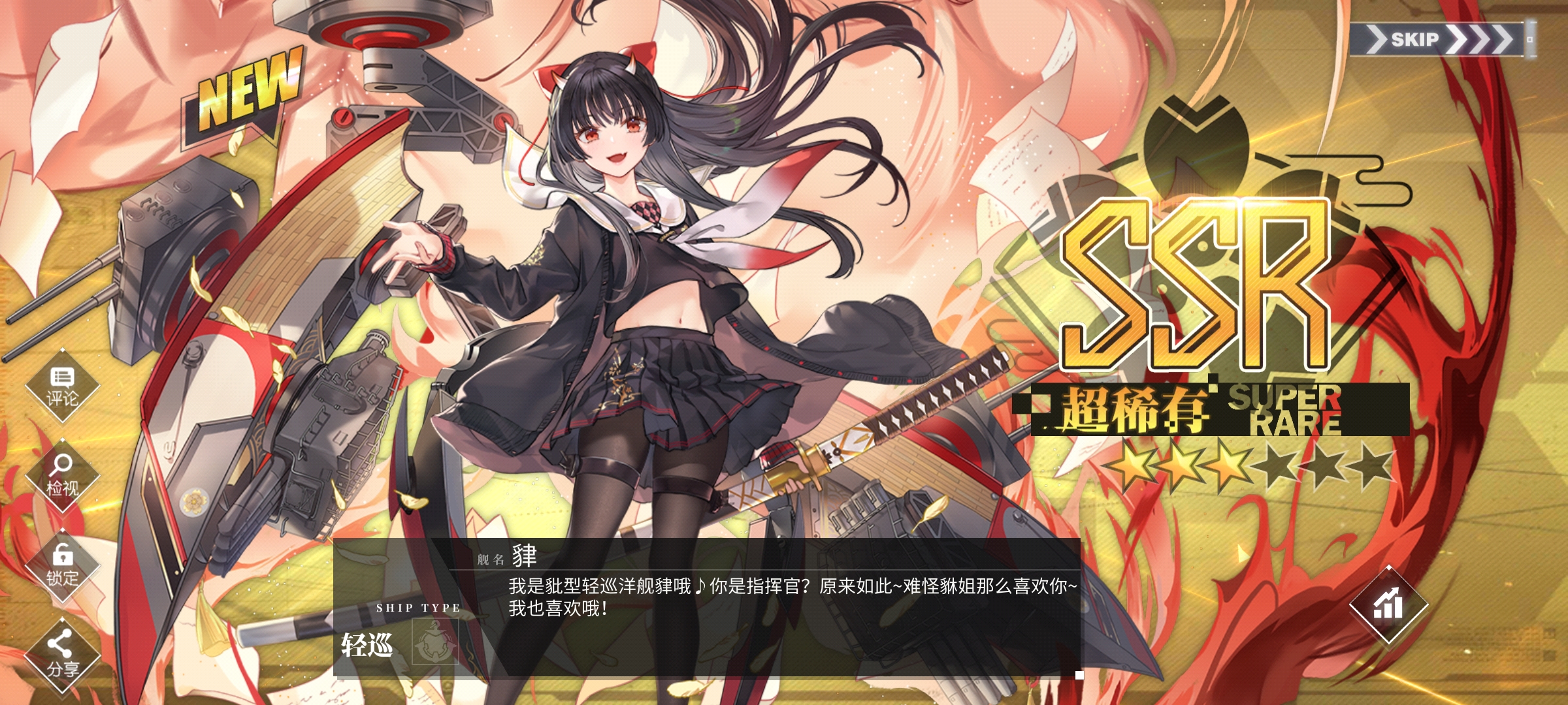 因为是能代的妹妹,所以不客气的直接拿来和能代比,确实还挺意外和惊喜的,不错,虽然肉度和生存能力不如能代,但是把亏损的这一块补到了输出上了,没有拐子一样能玩的很开心,放到轻巡中少说也有一流的级别和水准吧,不算差,不过具体怎么用,还有待后续的实测。
