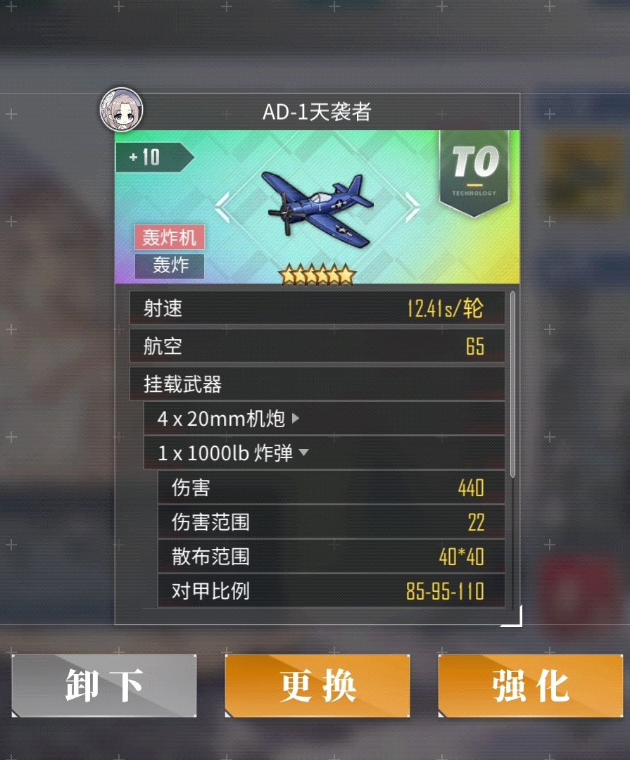 单轮输出能力非常离谱,直接拿天雷做对比,对轻甲高115%,对中甲高30%,对重甲低35%,但是CD很慢,需要搭配其他飞机来调速,实战命中率高的离谱,整体输出能力突出一个稳定和靠谱,对重甲虽然输出不如天雷,但是也不是特别的差。