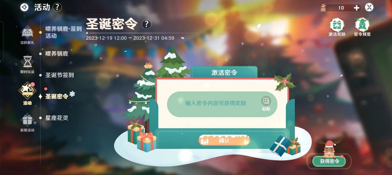 从主界面右上角的【活动】→【活动】→【圣诞密令】
