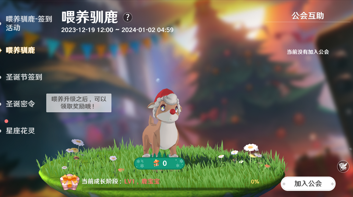 从主界面右上角的【活动】→【活动】→【喂养驯鹿】