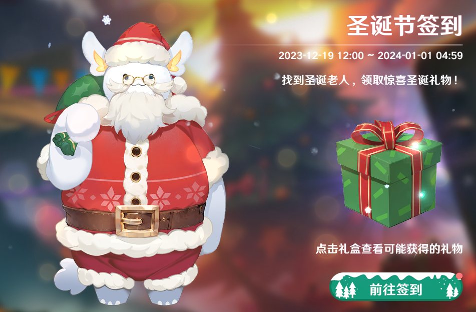 新增签到活动,每⽇与圣诞NPC交互,进⾏每⽇签到领取奖励