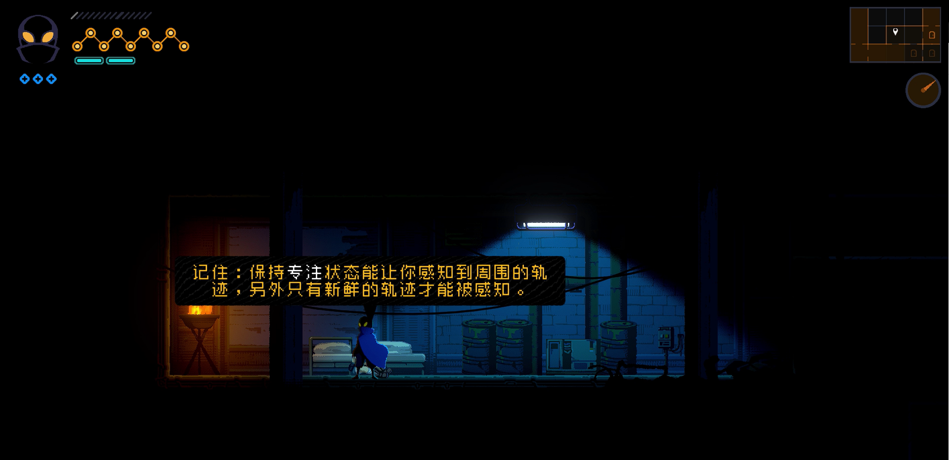 通过对话,芽木会教你如何寻找巴克的足迹。足迹的颜色为绿色和紫色。(保持专注状态,即手柄玩家的右摇杆进入的瞄准模式,屏幕触控玩家的左方瞄准按钮进入瞄准模式。)