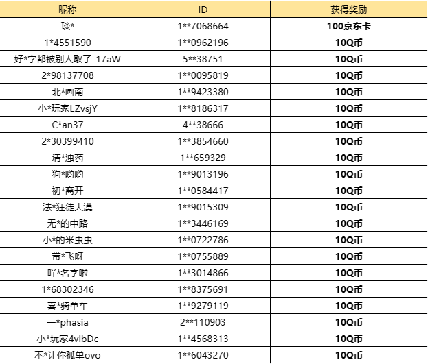 为了保护大家的个人隐私,以后开奖信息将由部分屏蔽的昵称+ID组成,小伙伴们可一定要仔细核对哦~