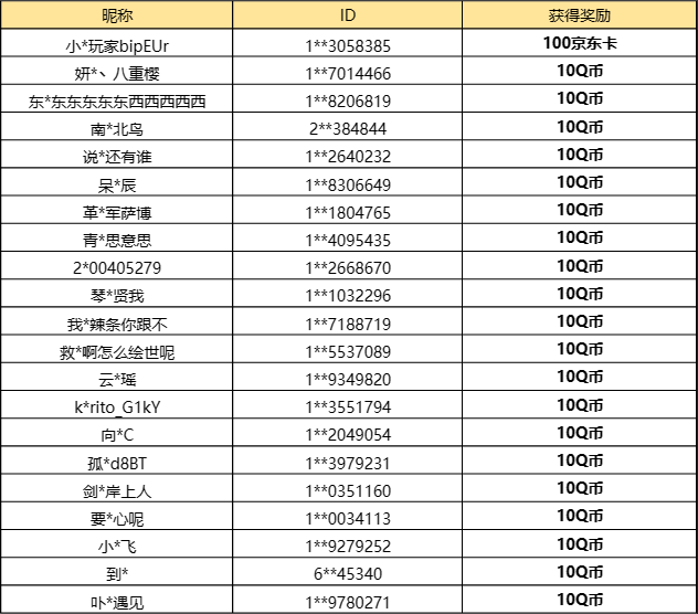 为了保护大家的个人隐私,以后开奖信息将由部分屏蔽的昵称+ID组成,小伙伴们可一定要仔细核对哦~