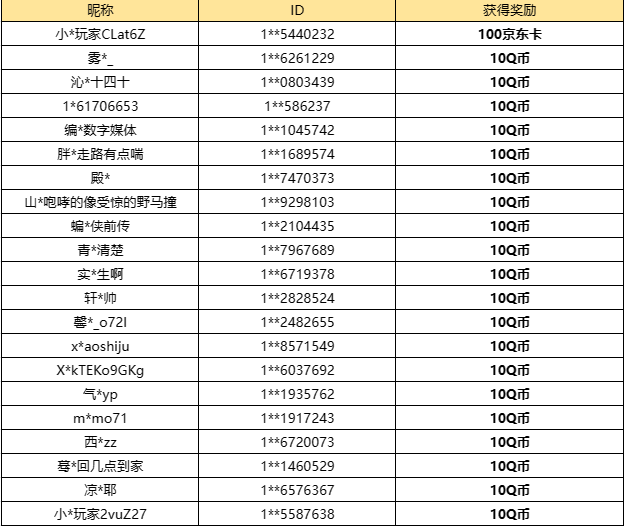 为了保护大家的个人隐私,以后开奖信息将由部分屏蔽的昵称+ID组成,小伙伴们可一定要仔细核对哦~