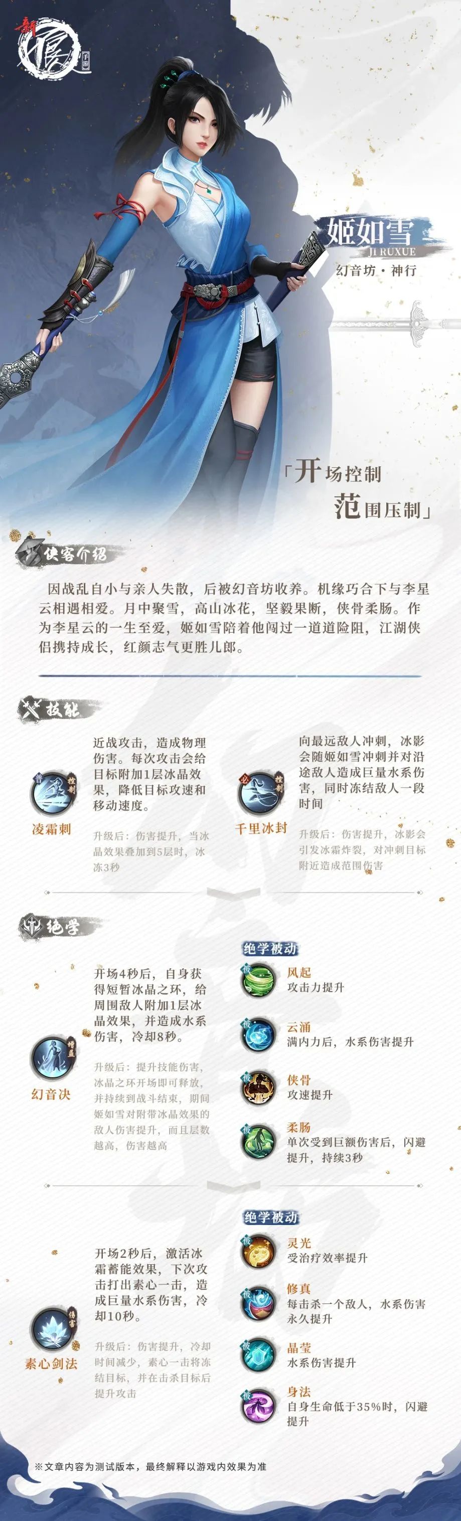 【游戏情报】侠客名录之幻音坊·姬如雪