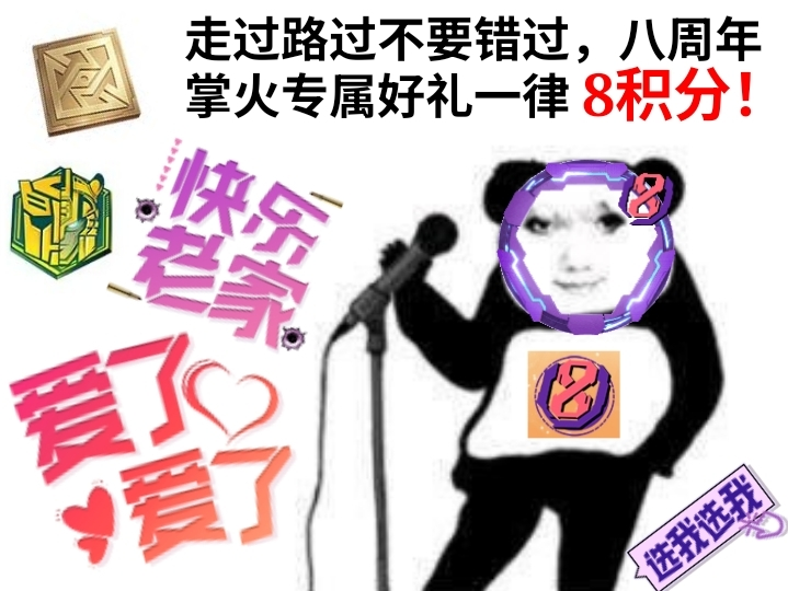 然后是掌火老哥们专属的积分福利,12月1日起,掌火积分兑换区会陆续上线大黄蜂徽章*10、谜城币*1、8周年掌火动效头像框、快乐变形徽章、掌火8周年角色秀(120天)、8周年掌火表情包(60天),CF手游电竞女团表情包(60天)等道具。更重要的是,这些道具的价格均为8积分,让我们一起嗨爆8周年!
