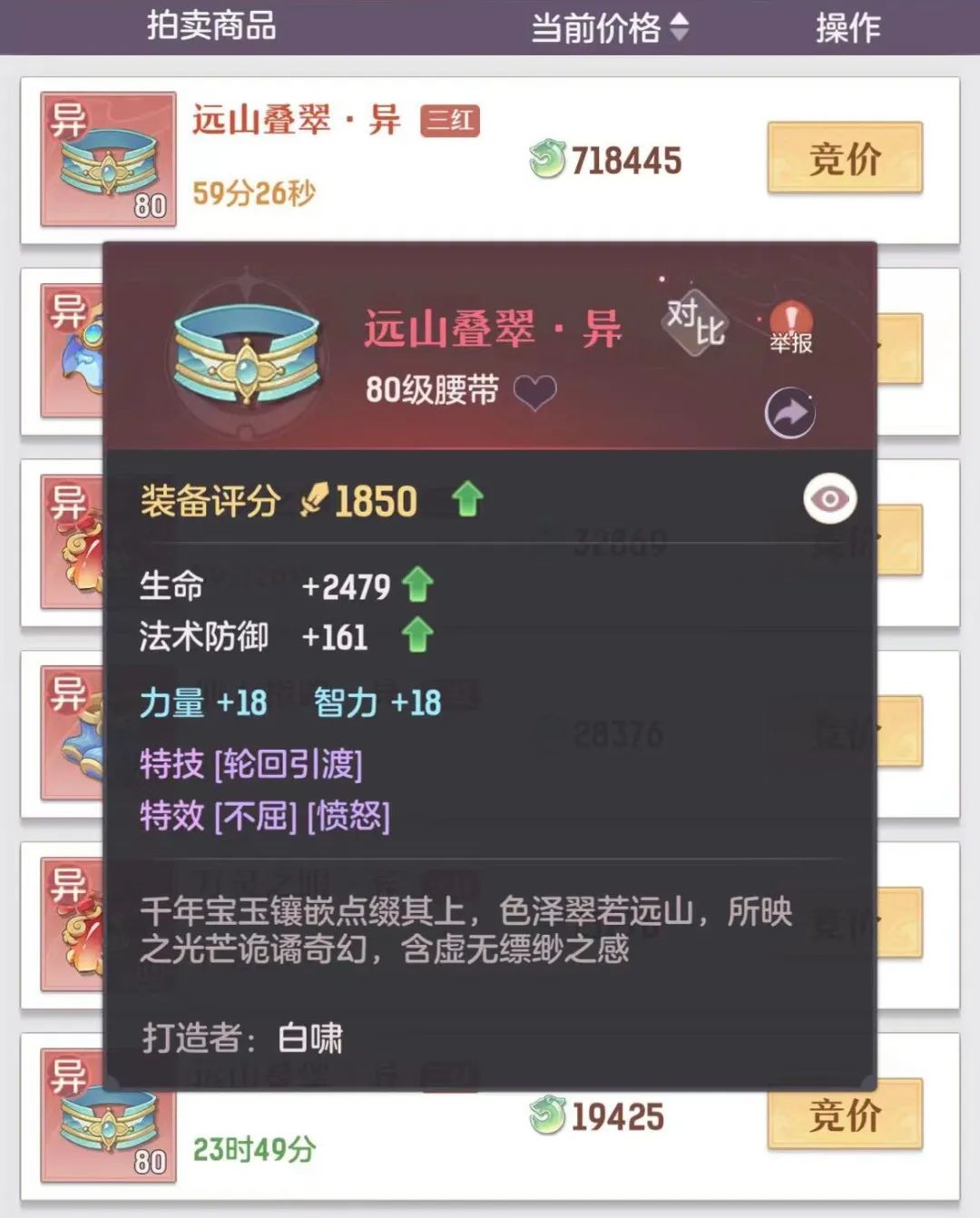 虽然基础不算特别突出,但胜在正加40属性以及三红,血咒法暴也是法系门派首选,最后成交价23万,猪哥觉得你小子是真的欧到爆!