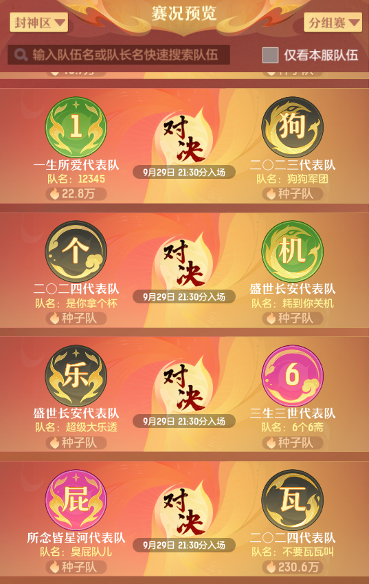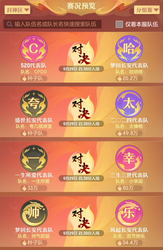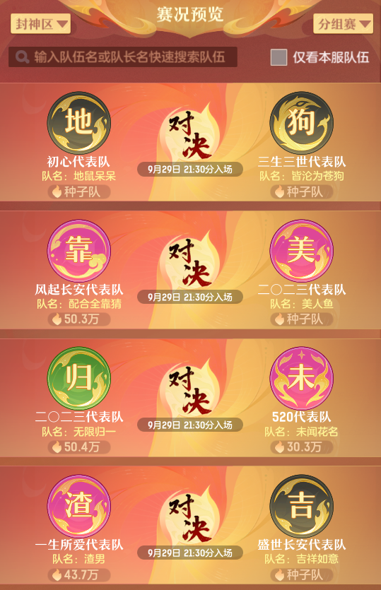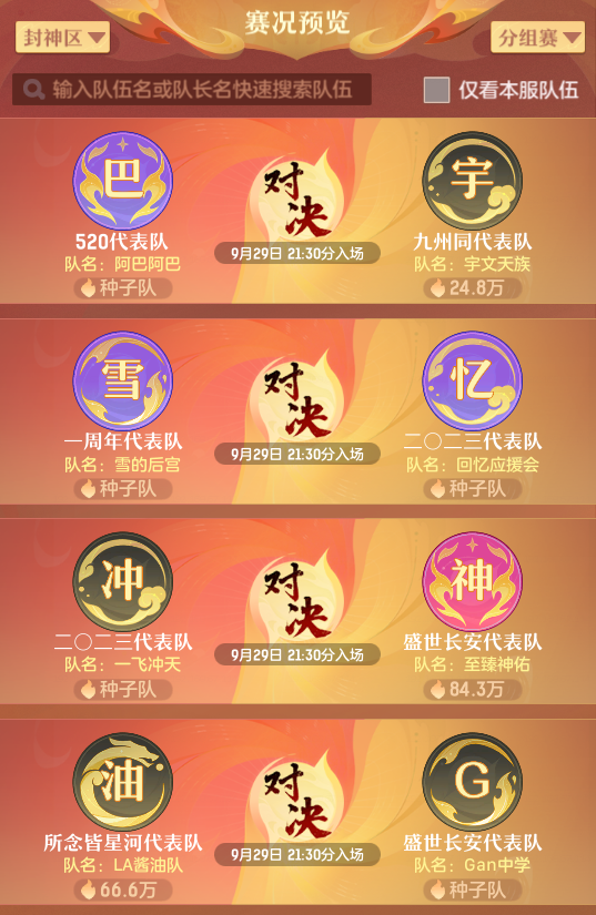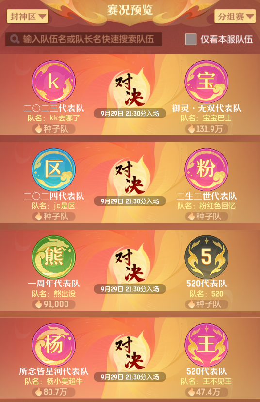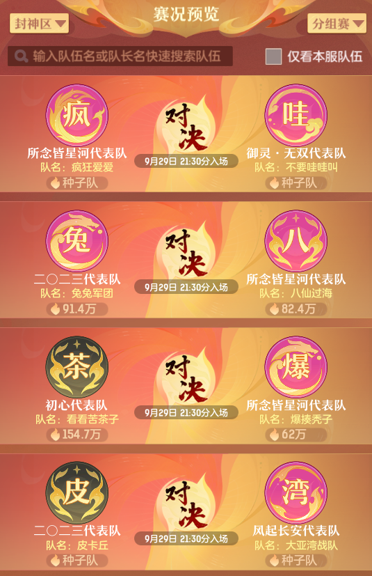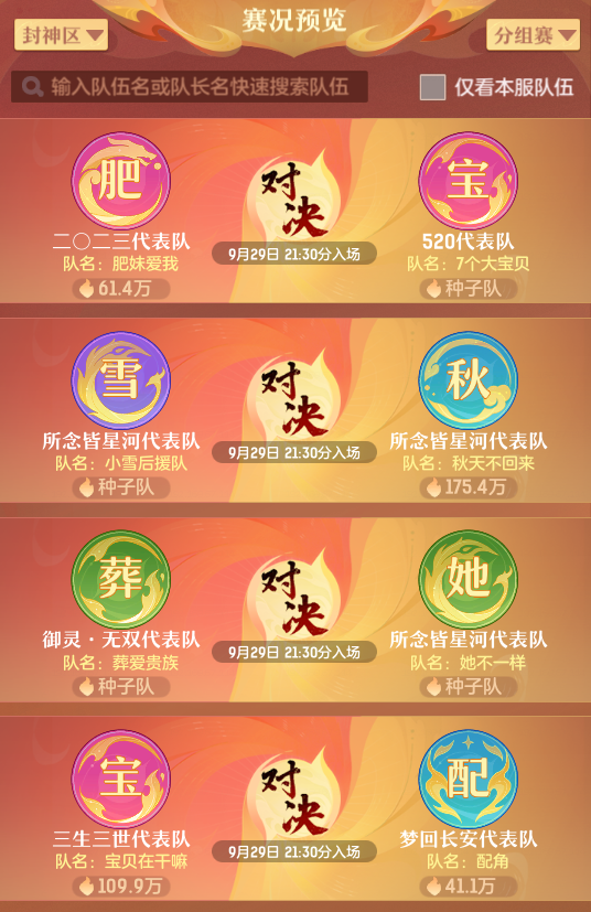 想了解更多当前版本妖灵在高水平战斗环境下的表现,可以关注9月29日晚21点30分分组赛——64支来自不同区服的代表队伍,将在今晚角逐封神赛区和逐神赛区的参赛资格。