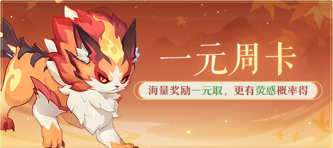 一元直购周卡,可领高书、永久头饰等奖励,更有珍兽福袋概率开出珍兽荧惑!