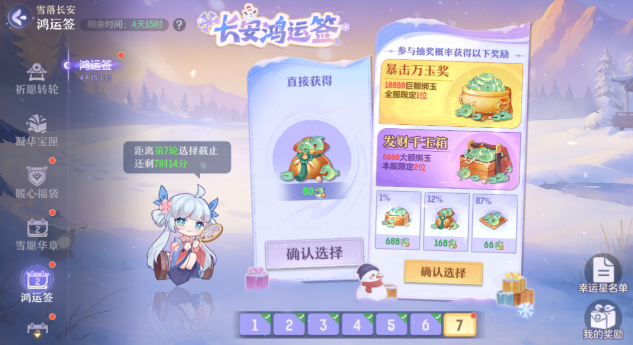 活动期间,每天提供两种绑玉领取方案,御灵师可选择拿下稳定收益,或是选择搏一搏,赢取幸运大奖,祝各位御灵师好运连连!