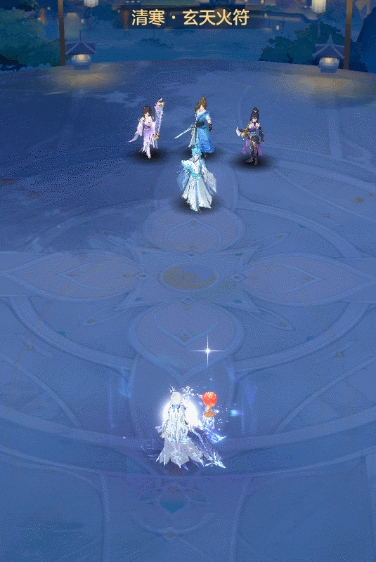 对4名敌人单位造成法术伤害,同时获得1轮[冰月],并为自己和1名非广寒门派的法系御灵师施加[折月镜]护盾(按一定比例的自身最大生命值计算盾量,不超过自身等级*101)