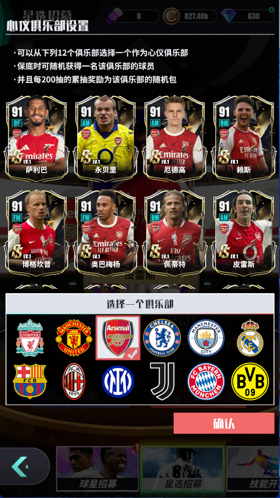 玩家可以在游戏中的星选招募中选择阿森纳作为自己的心仪俱乐部,增加抽到阿森纳球员的概率,并且保底时可随机获得一名该俱乐部的球员,并且每160抽的累抽奖励为该俱乐部的随机包。