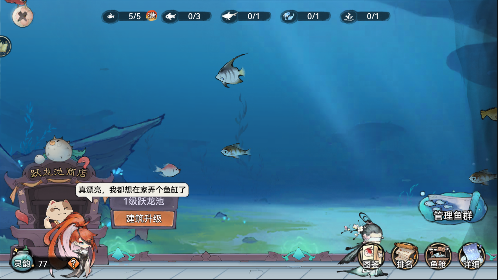 祖师在以渔会友活动中捕获的各类观赏鱼则可投入跃龙池中,增加跃龙池的灵韵,提升各类鱼种的图鉴属性。