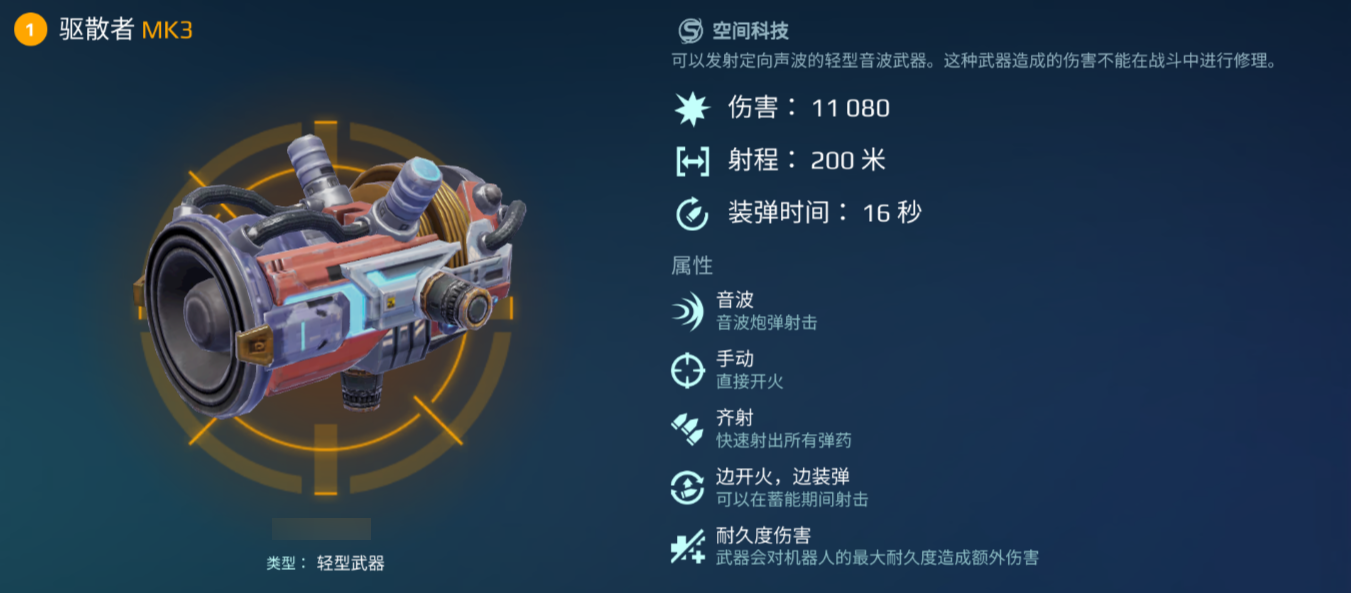 无论是前排格斗机甲的对抗拉扯,还是刺客机甲的绕后奇袭,[音喷] 都能轻松完成 “致残” 目标;尽管较长的填弹真空期使其不适合技能型机甲选配,但近战刺客与坦克机甲搭载它后,战斗表现依旧十分亮眼,足以支撑其在未来很长一段时间内保持战场竞争力。