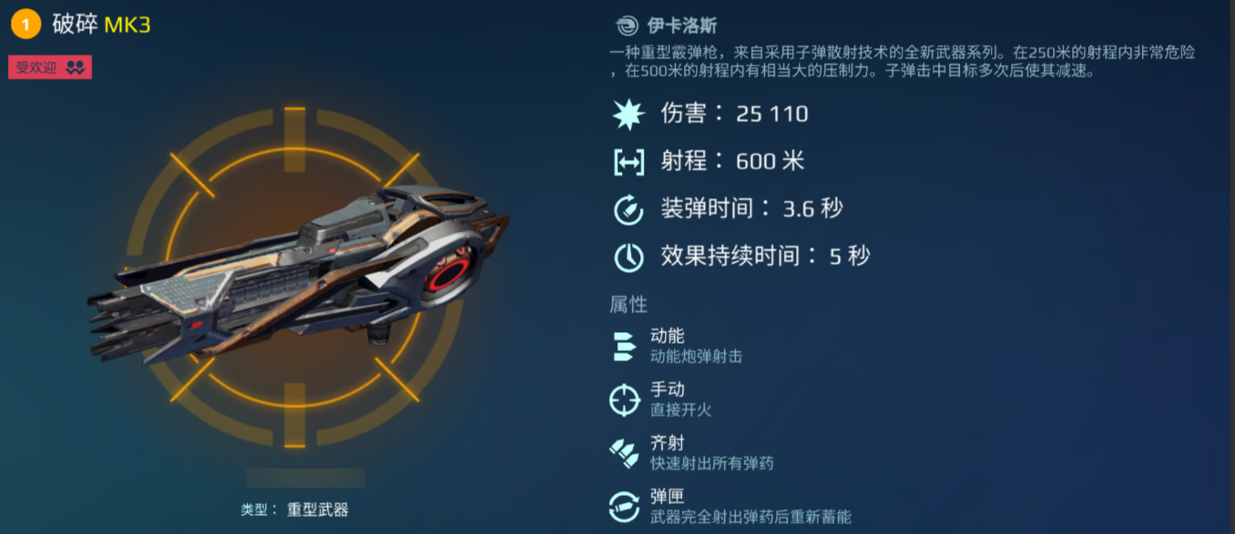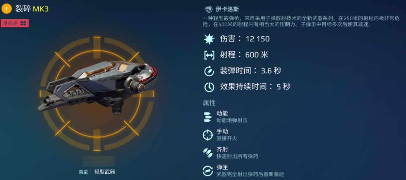 面对无护盾、或能量护盾处于冷却的机甲,[崩裂喷] 往往能实现 “两枪制敌”:首枪直接上演 “血条消失术”,瞬间致残敌方;次枪便能击穿目标耐久,完成收割。