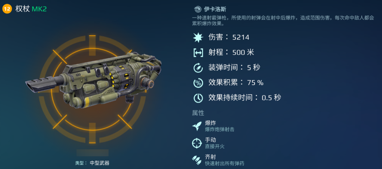 更核心的是其专属 “减速” 特性,让留人拉扯能力拉满,尤其适配 [奥乔科奇]、[猞猁]、[蜃楼] 等自带位移或突进的近战 / 刺客型机甲:既能配合机甲近战优势打高伤,又能借中程减速挂负面,通过牵制拉扯打乱敌方节奏,充分发挥机甲与武器的协同作战力。