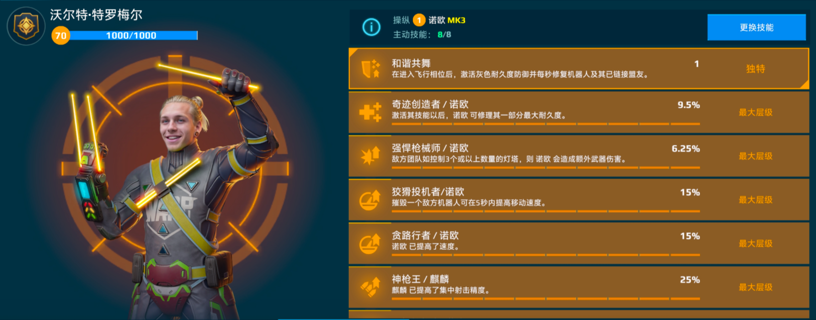 输出方面,[诺欧]搭载1重、2中,共三个武器槽位,基础火力表现出色;更关键的是,其技能可提供覆盖整个对局的持续伤害增幅,通过合理的武器搭配,整体作战能力足以比肩泰坦级单位。