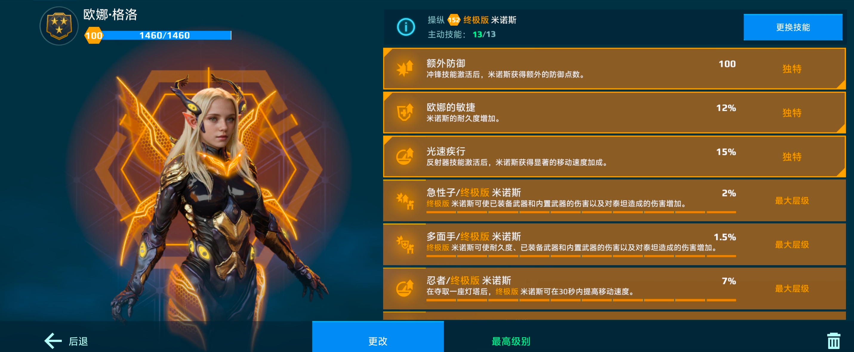 除上述两项强化外,[终极版米诺斯] 还新增了独有的 “终极反控制” 能力:可自动清除锁定、压制与电磁脉冲等负面效果,并获得临时防护;技能满级后,更能全局无视此类负面状态,抗干扰作战能力堪称版本顶级。