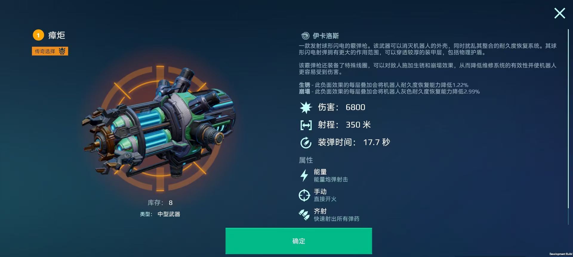 [毒喷] 作为双管酸液霰弹枪,核心输出由即时爆发与持续毒伤构成。其爆发强度在线,面对小型机甲时,往往能实现一发破盾、两发摧毁的瞬杀效果。