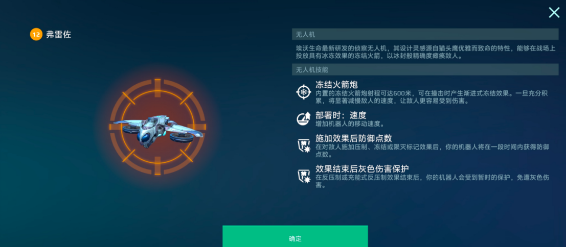 无人机推荐搭配「弗雷佐」,其射程与 “冰拐炸” 一致,技能特性高度契合,可对目标施加多重减速与易伤效果,让被标记目标插翅难飞。同时,它还能为「探路者」提供额外防御点数、灰伤抗性及移速加成,进一步强化其综合作战能力。