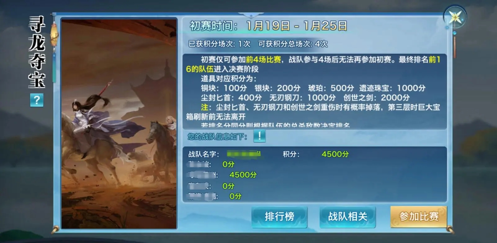 秘境探宝,大显身手。全新赛事活动【寻龙夺宝】将在1月18日来袭,开放79等级上限及以上服务器的少侠们可组成战队参与活动!