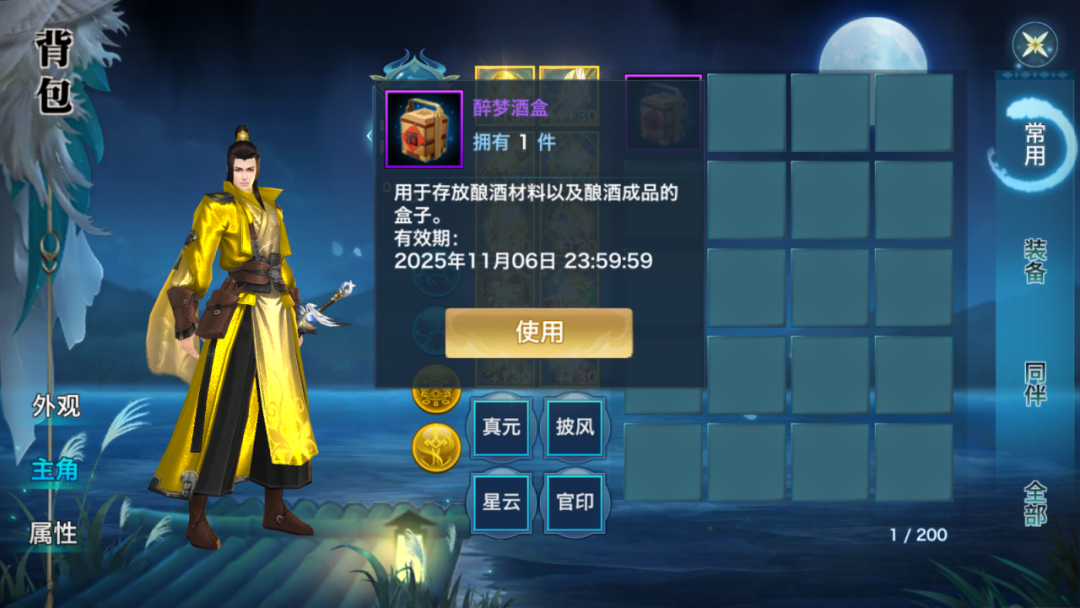 少侠可通过每日活跃度宝箱获取随机3种酿酒材料,材料将被放入专属道具【醉梦酒盒】中。