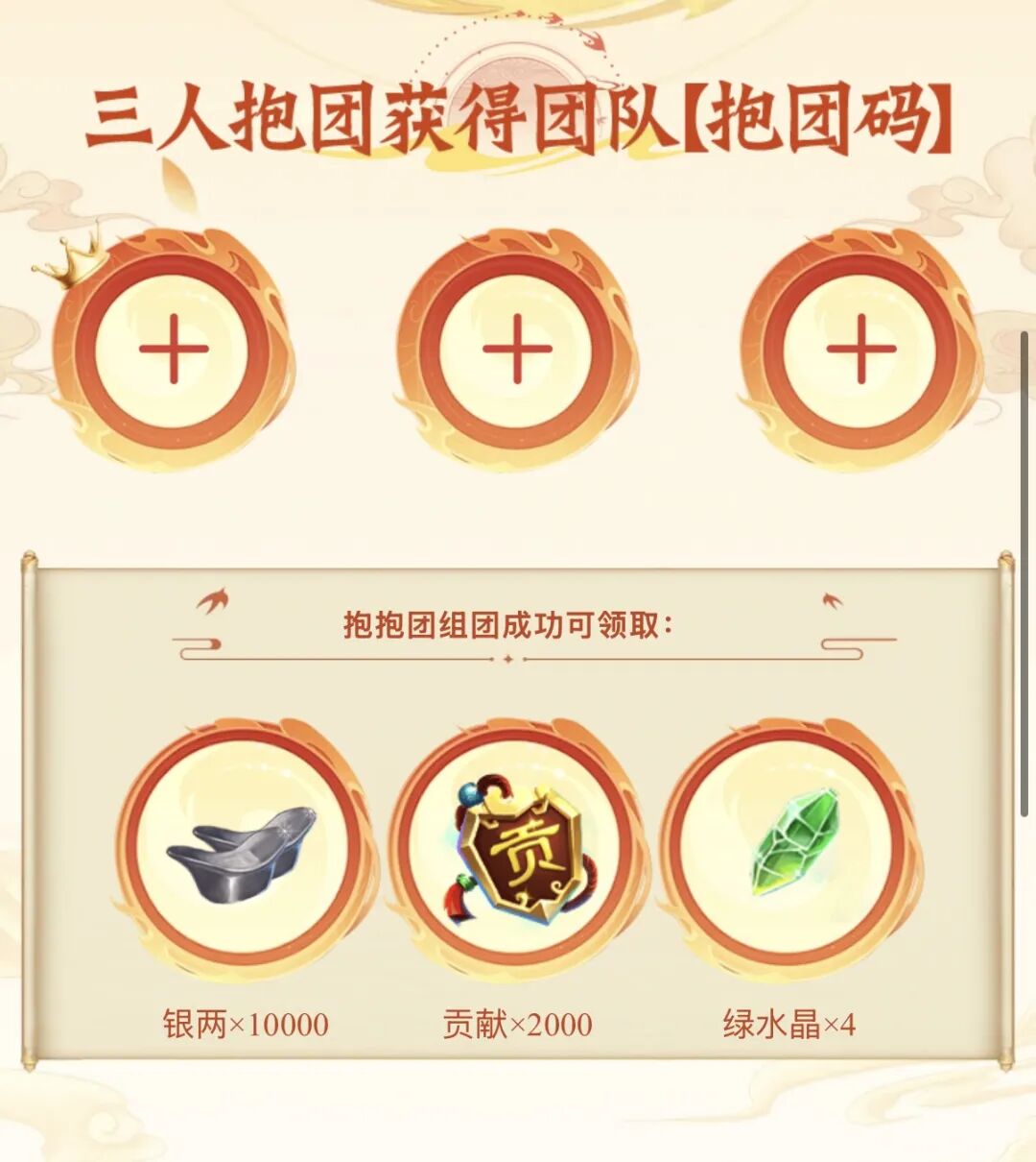 4抱团队伍积分有什么用?系统会根据抱团队伍积分解锁多个档位奖励,邀请填写【抱团码】的人越多,少侠领到的奖励越丰厚。