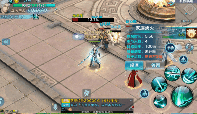 在11月11日4:00-11月15日23:59,每天19:15家族烤火活动期间,家族属地会刷新一只“单单狗”,少侠需与家族成员一起保护单单狗免受窃心贼的伤害。
