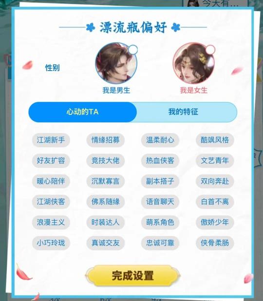 打捞前少侠还可以设置漂流瓶偏好,有机会遇到更投缘的人哦~