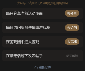 进入活动页面后,完成系列任务可获得抽奖机会。