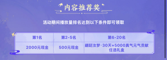 3.内容推荐奖励:根据单条作品累计播放量进行排名,活动结束后结算发放奖励;