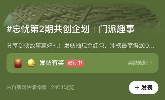 发布内容必须与活动话题相关;发布时必须带上指定话题标签:#忘忧第2期共创企划|门派趣事。