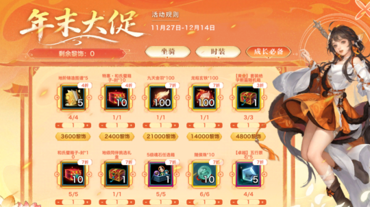 时至岁末,万金财带着琳琅满目的各种物品来了!11月27日至12月14日期间,游戏内【年末大促】活动将限时开放!