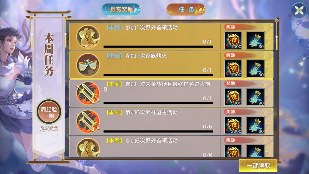 少侠通过完成每日和每周任务获得赛季经验提升悬赏等级,并可通过解锁更高阶的悬赏令获取更高级的养成奖励。