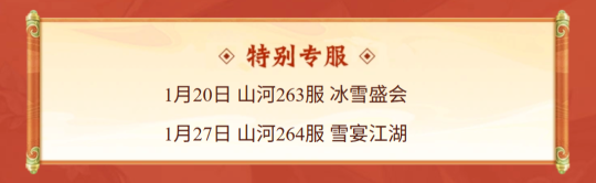 本次【冰雪节】主题特色服将开放两大专服,最近有入驻新服想法的少侠可以预约一下!