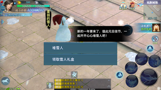 在活动期间,家族属地内将会刷新雪人,少侠们在家族烤火时,可以找其领取一个【雪人礼盒】。