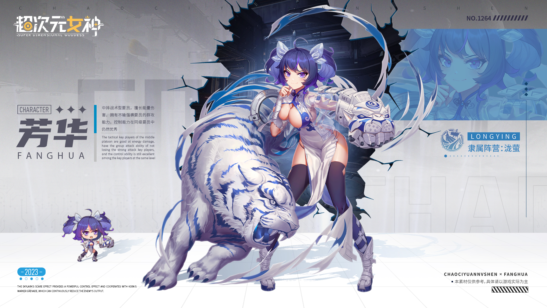 习武少女,以其精进的拳法成为形意门掌门候选。芳华的内心既有虎的骁勇果敢,又有鹤的清悠纤细,在战斗中可以担当队伍的主力战士,日常生活中也擅长照顾身边的朋友。