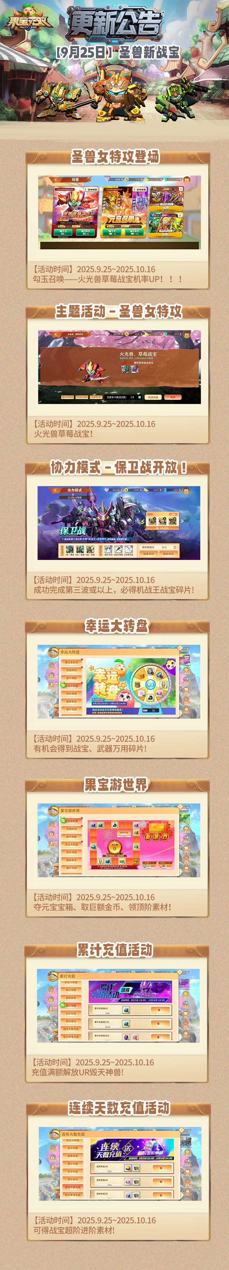 《果宝无双》将于9月25日(星期四) 上午10:00 至 16:00进行停服维护更新,请果宝们注意维护时间!
