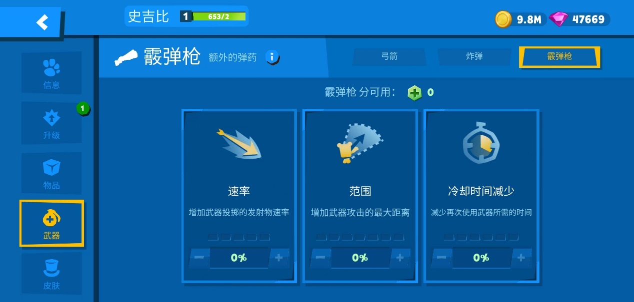 霰弹枪有范围、冷却时间减少、速率这三个培养方向,且都是提升伤害能力的主要因素;霰弹枪比较适合中近距离,适合配合炸弹在近距离对战中来作为补刀武器,操作比弓箭和标枪要简单一些,所以新手也能在很短时间内适应,而且战场中霰弹枪大部分时候是比较容易找到的。