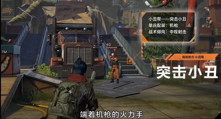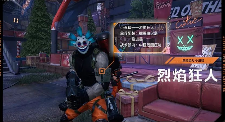 首先在我们来到小丑帮营地门后,与我们正面交锋的就是【游荡小丑】。你以为他们只是一个看门的?当然不是,游荡小丑虽然是小丑帮里面最底层的存在,一旦被他们发现你的存在,他们就会毫不留情地挥舞着球棒冲向你,千万可别小看他们,他们在身上还隐藏了大量的炸弹,因此在我们遇到时,尽量在其10米之外将其击杀,以保证自身安全。