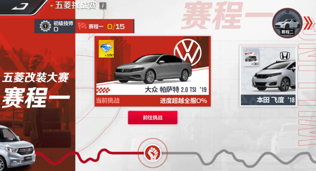 五菱挑战赛现已开放,这里有超过30场的比赛且比赛难度逐步上升,检验大家在【五菱改装车间】改装成果的时机到啦!
