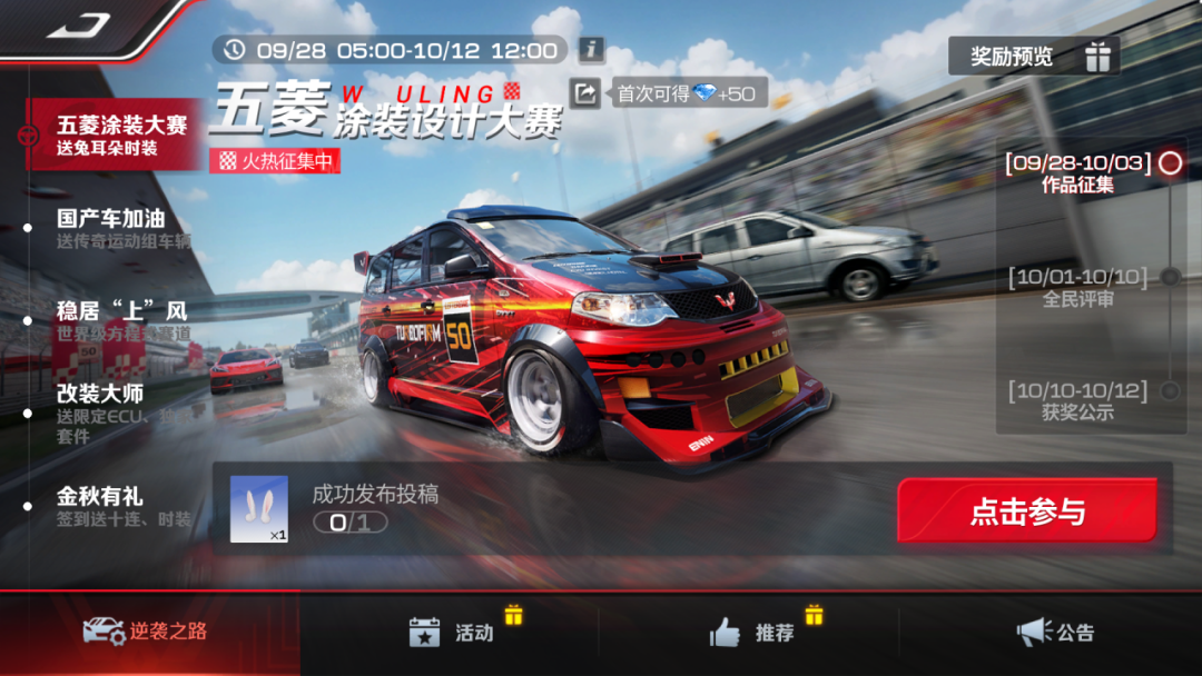 喂喂喂!除游戏内投稿外,别忘了“寻找回头率爆表五菱神车”活动还在进行中,将投稿作品带话题发布到社交平台,还有机会获得额外奖励噢~