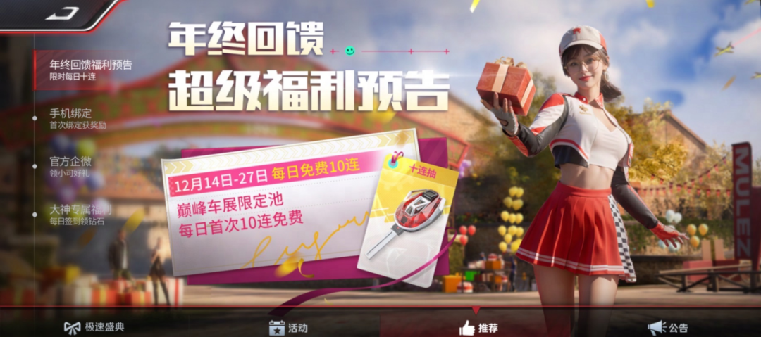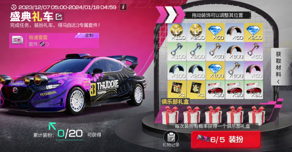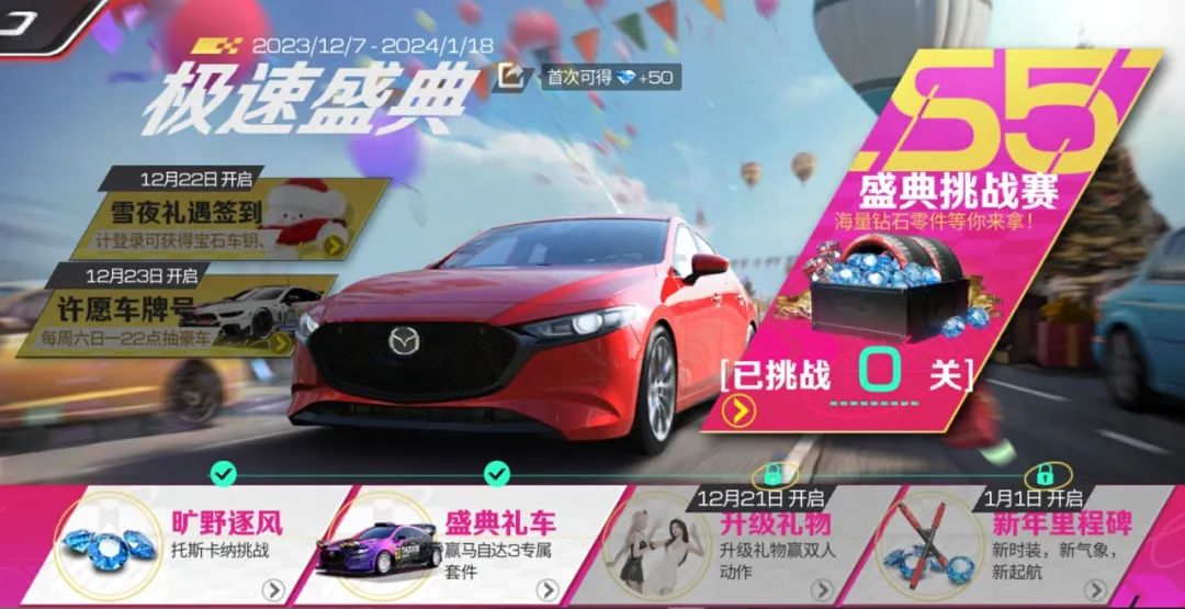 香车美女,极速盛典!S5盛大更新,参与活动不仅可以拿到游戏内丰厚奖励,还能额外得到小可给你准备海量钻石、改装材料和限定套件!