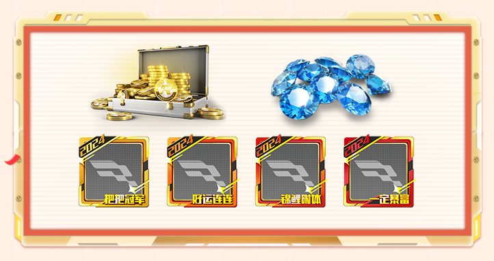2023年12月30日至2024年1月1日每日20:00~22:00,在游戏内的世界频道或同城频道输入关键词“2024把把冠军”、“2024好运连连”、“2024锦鲤附体”、“2024一定暴富”送出2024新年祝福,将有机会获取许愿头像框,108钻石和1288金币等随机奖励!重复输入关键词即可获得所有奖励!记得准时上线把奖品统统带走噢~