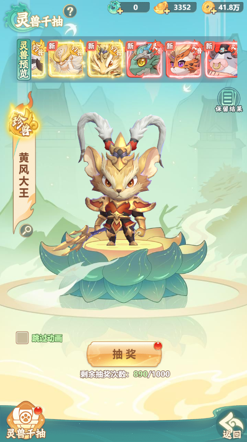 删测期间参与灵兽千抽活动,可获千次灵兽抽卡机会,珍稀灵兽伙伴等你来抽!