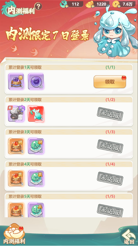 在内测期间登录对应天数,即可获得奖励,且游戏首发后会发送同等的奖励