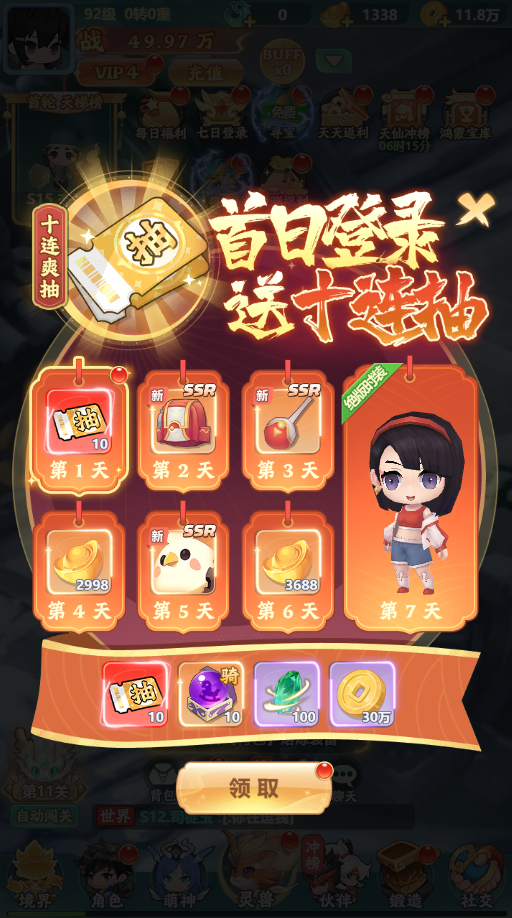 测试期间登录游戏,即可获得免费VIP特权。通关指定关卡,即可获得VIP10大礼