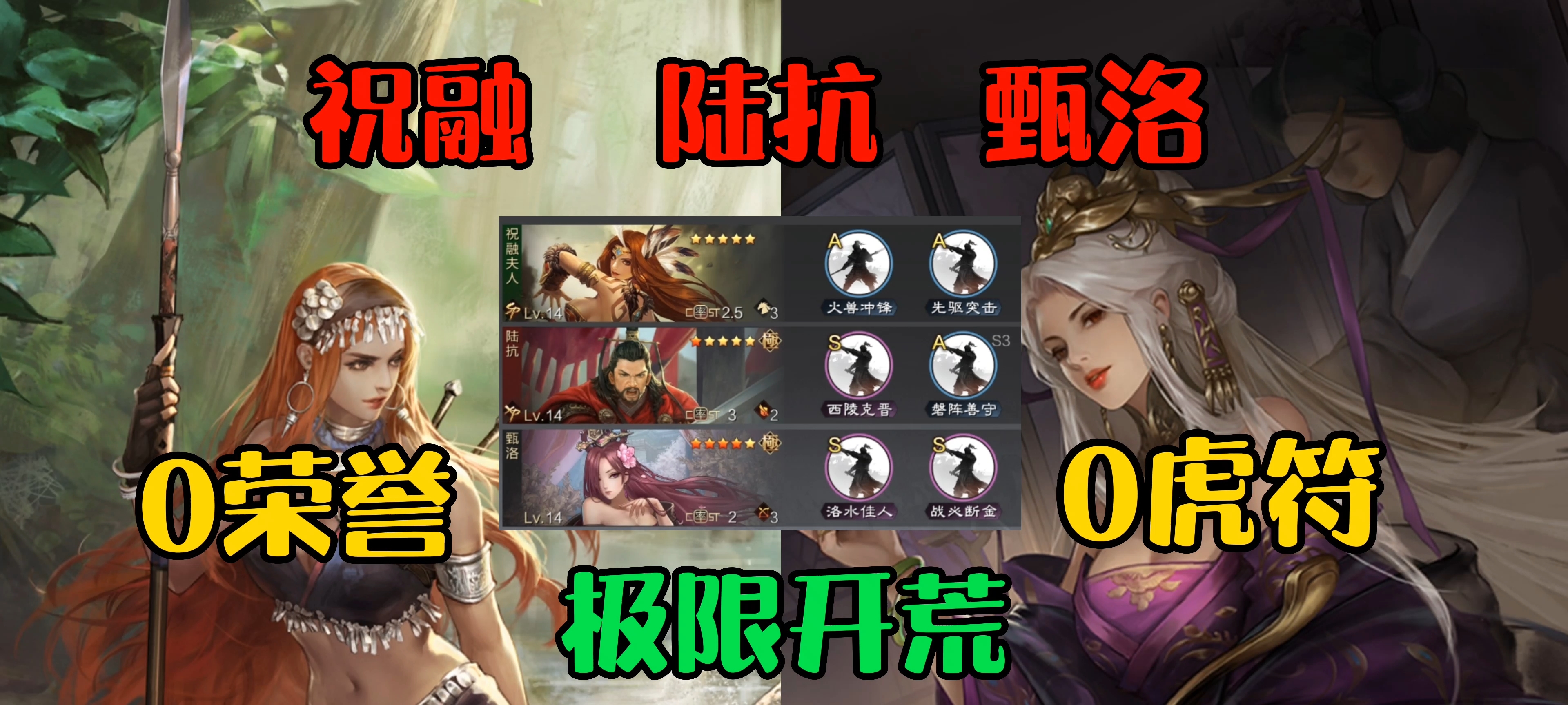 率土之滨:祝融夫人陆抗甄洛开荒实测,不用荣誉和虎符有点难