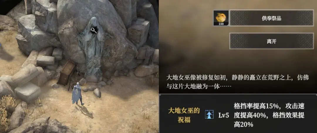 在「铸石之地」章节中,堡主们击败部分怪物会掉落“大地之灵”,将其供奉给砺石原的“大地女巫像”,就可以获得或升级“大地女巫的祝福”,提供可观的战斗增益~
